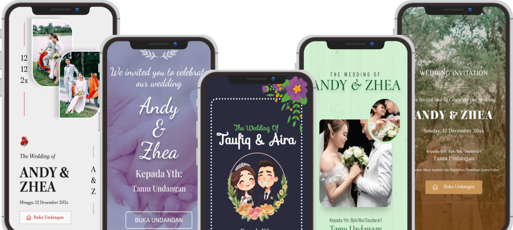 Tersedia beragam pilihan aneka template undangan digital yang menarik & kekinian.